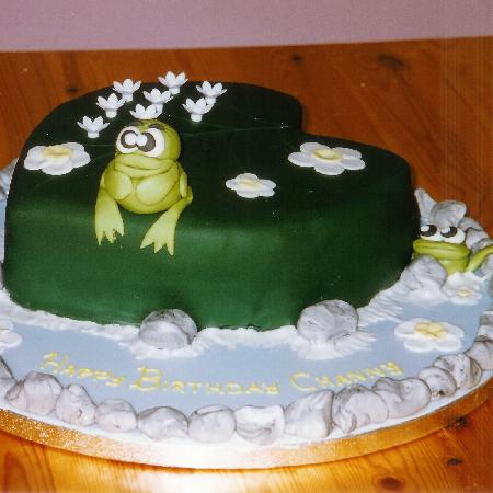 Fun frog sitting on a lily pad, with froggy admirer in the water.